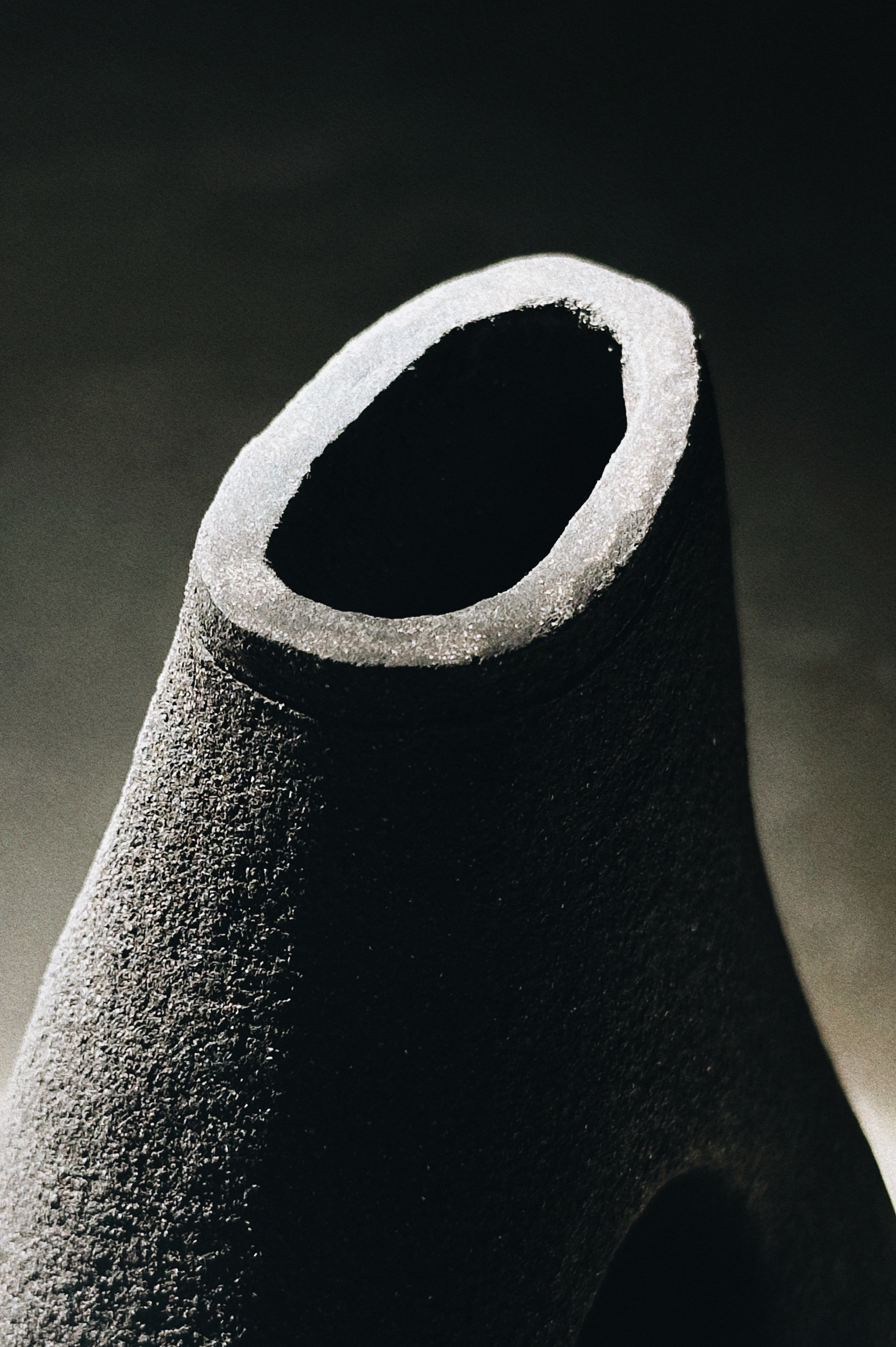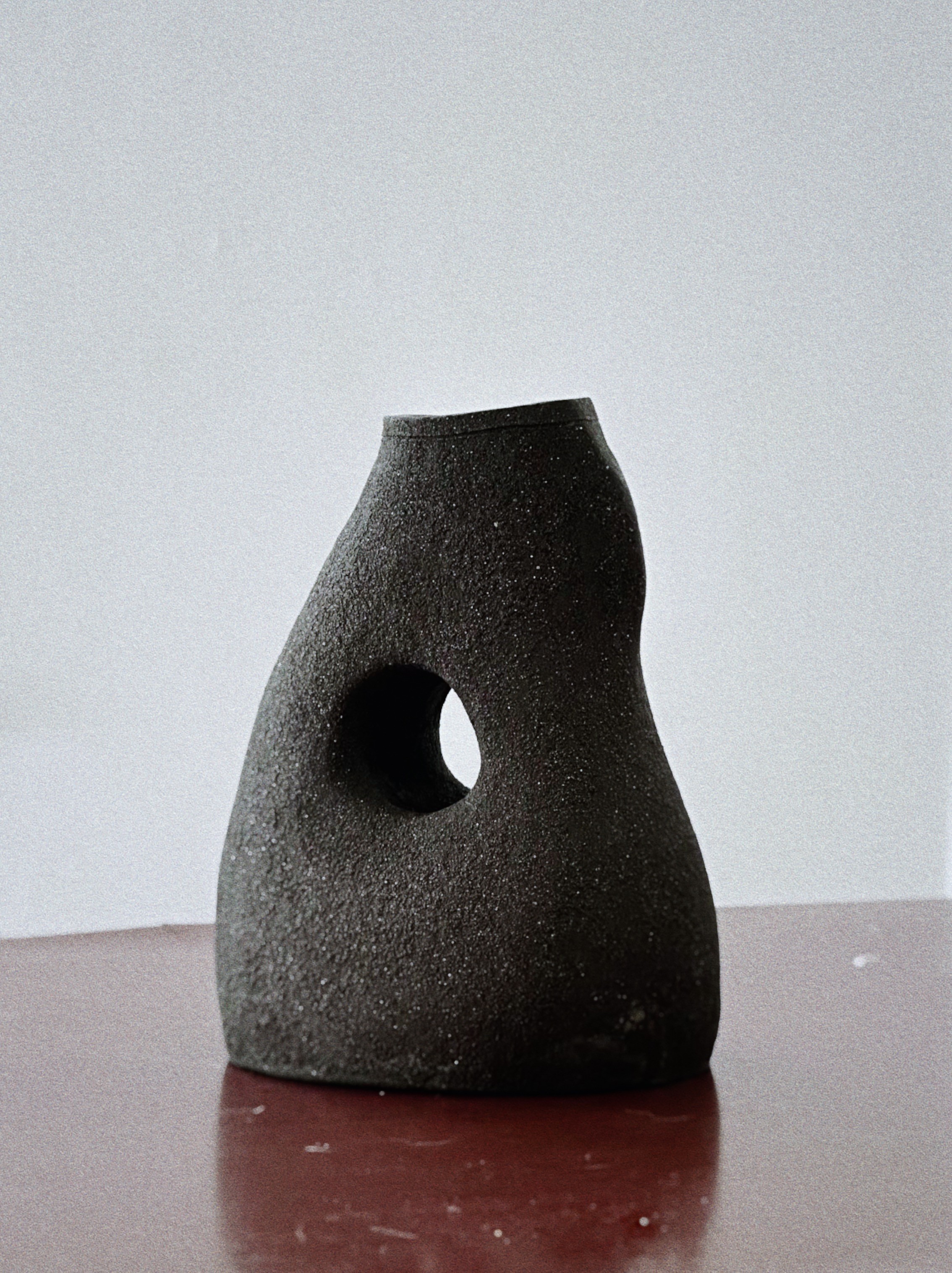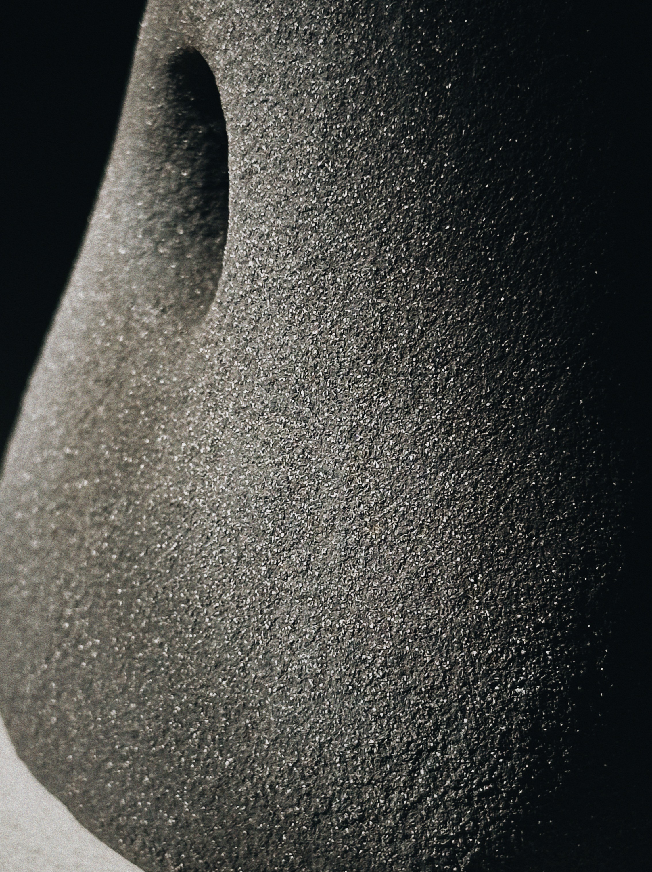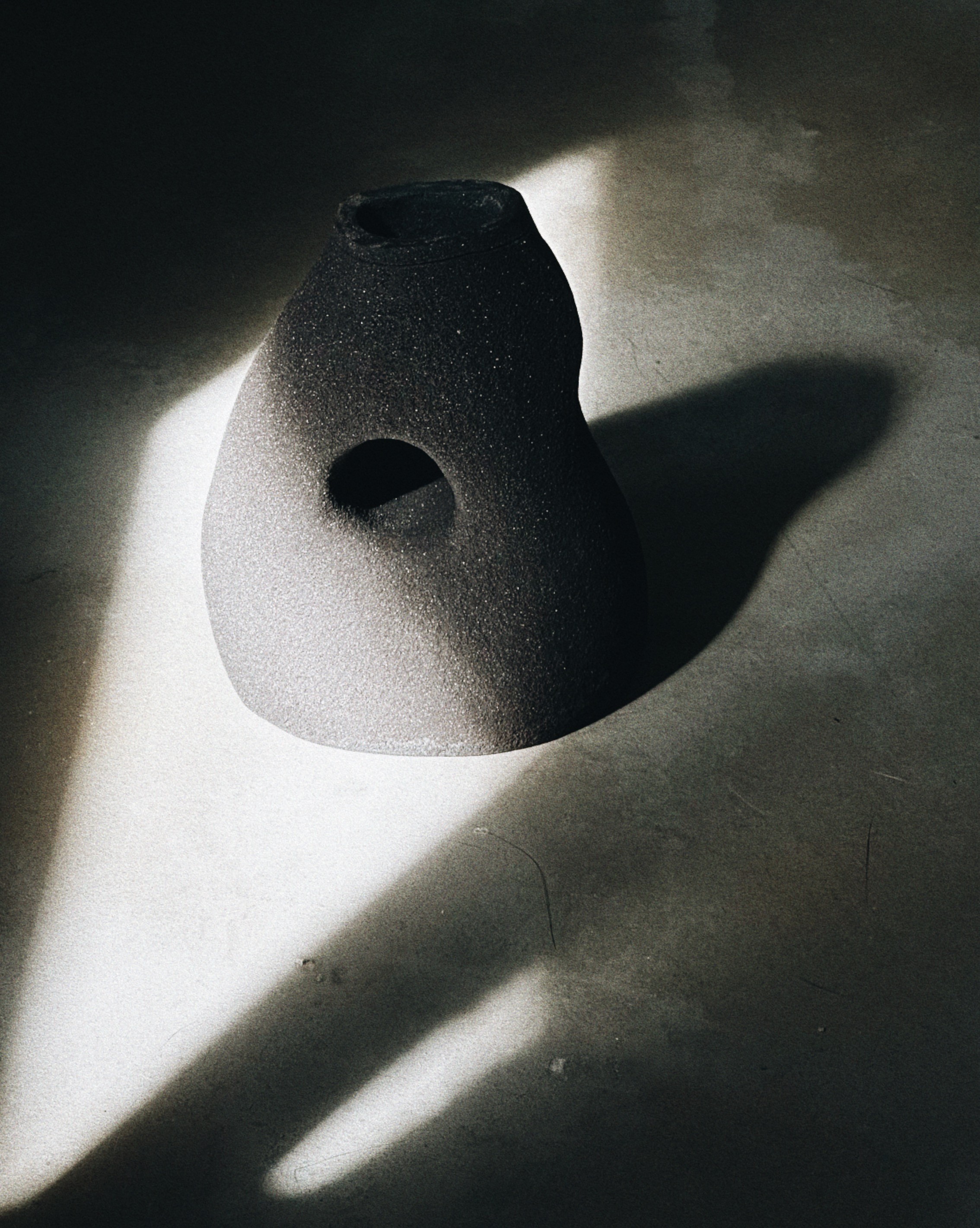 A soft rise with a hollowed center, carved, not cut. Its stance curves inward, holding stillness like a held breath.