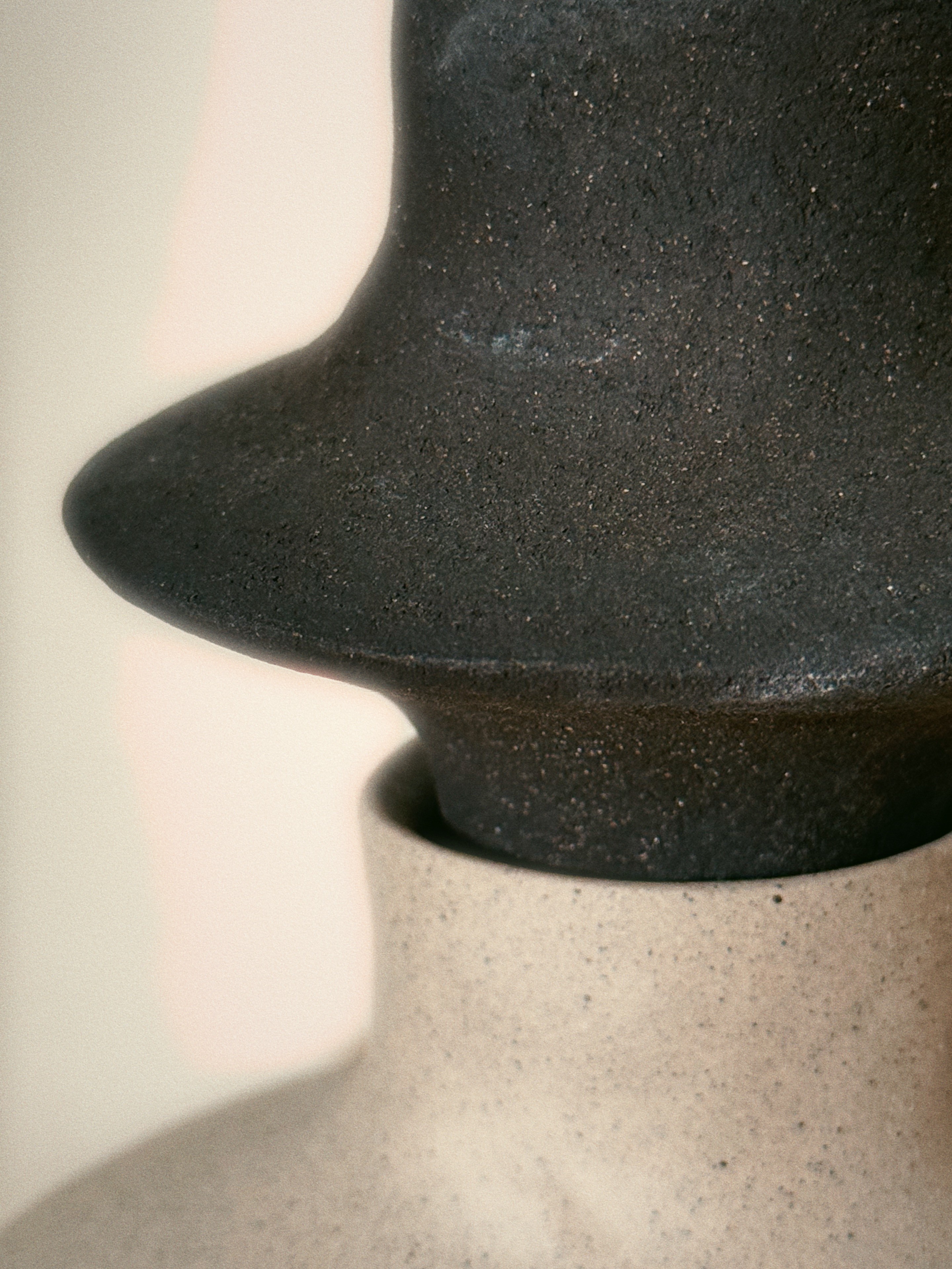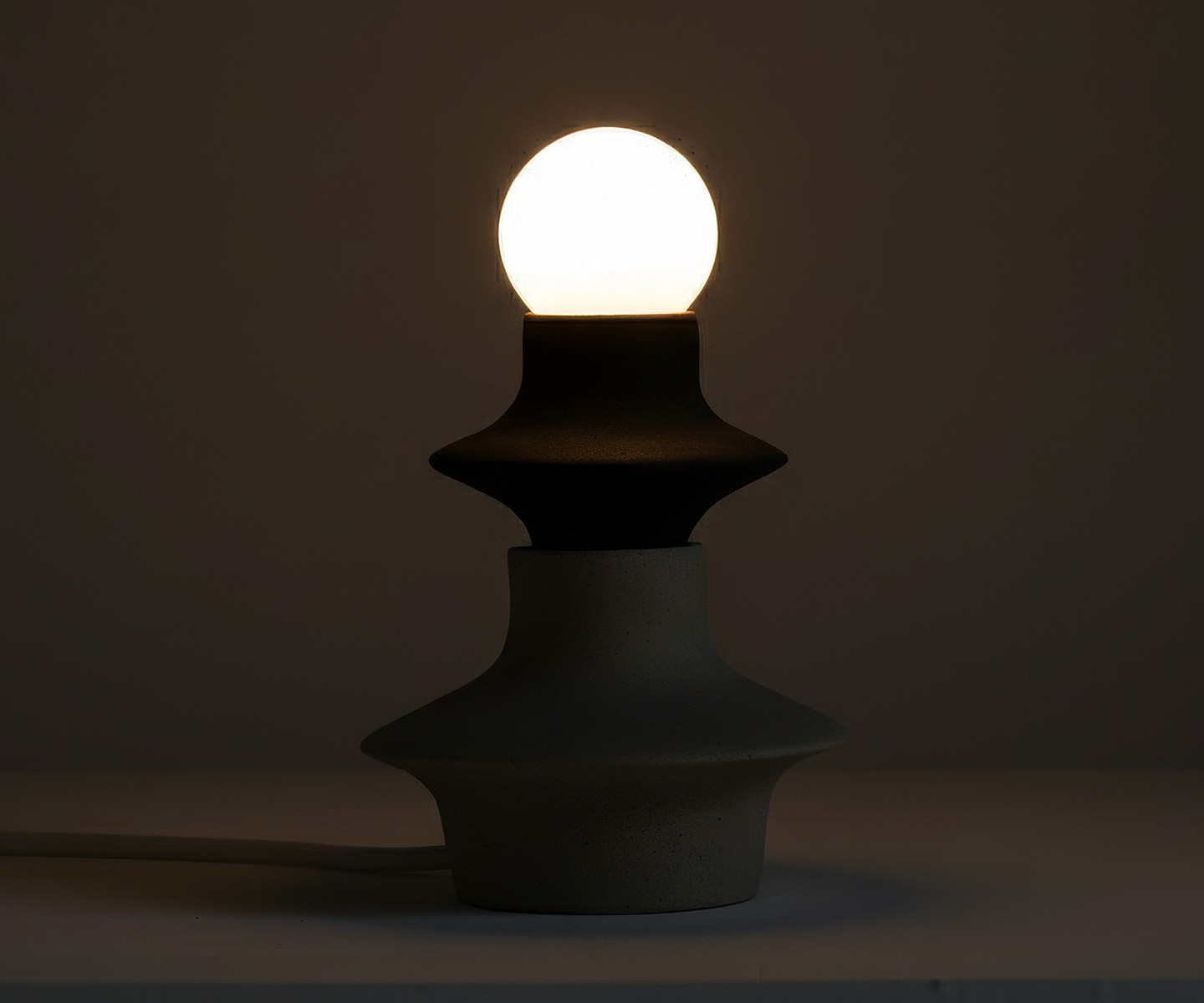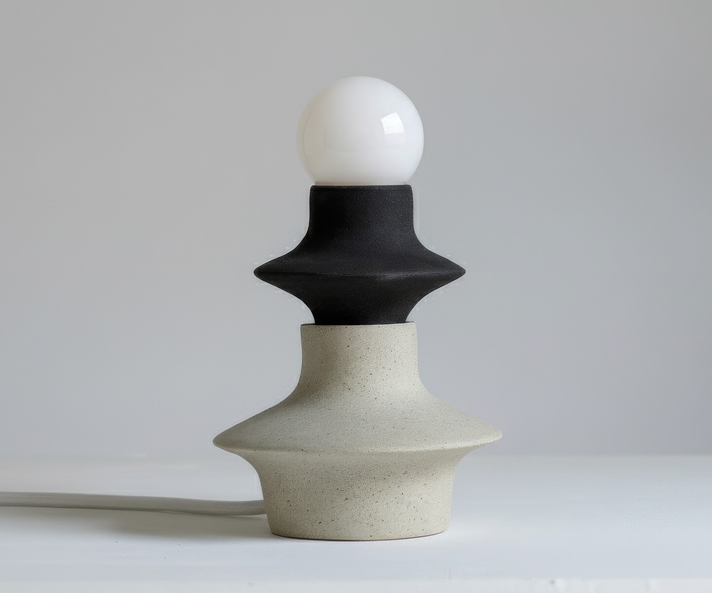 Two forms, joined in balance. This lamp experiments with duality contrast in tone, symmetry in profile, and unity through alignment. An object that feels both designed and discovered.